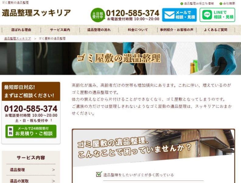 遺品整理スッキリアは、ゴミ屋敷の遺品整理を専門とする業者です。